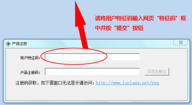 注意!注册过程将在提交后完成。提交后不能重新修改!不能重新再注册!请认真核对特征码是否正确!